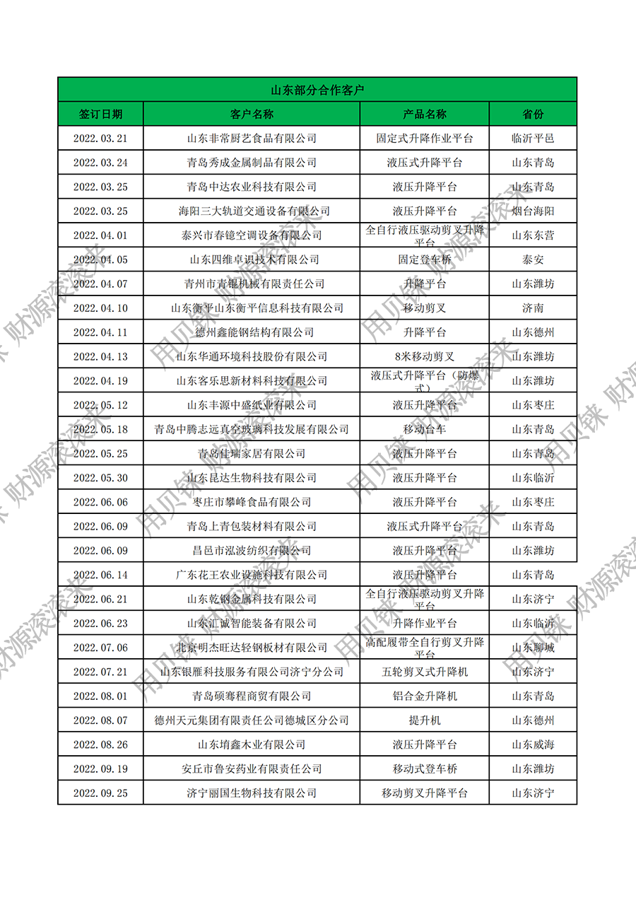 • 山東部分客戶1